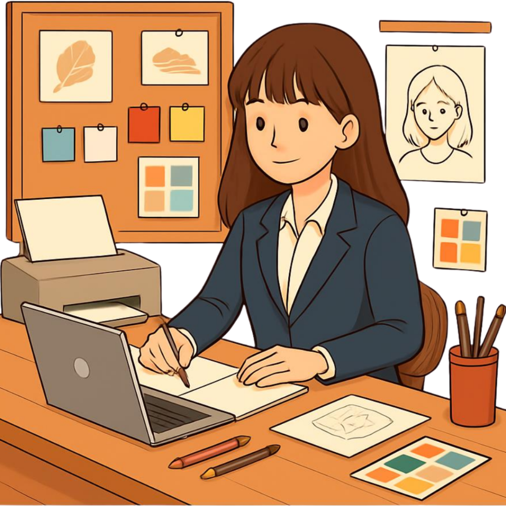 Mon approche est humaine, créative et personnalisée : chaque projet est conçu pour renforcer votre crédibilité, affirmer votre univers et vous aider à communiquer avec clarté et impact auprès de vos clients.